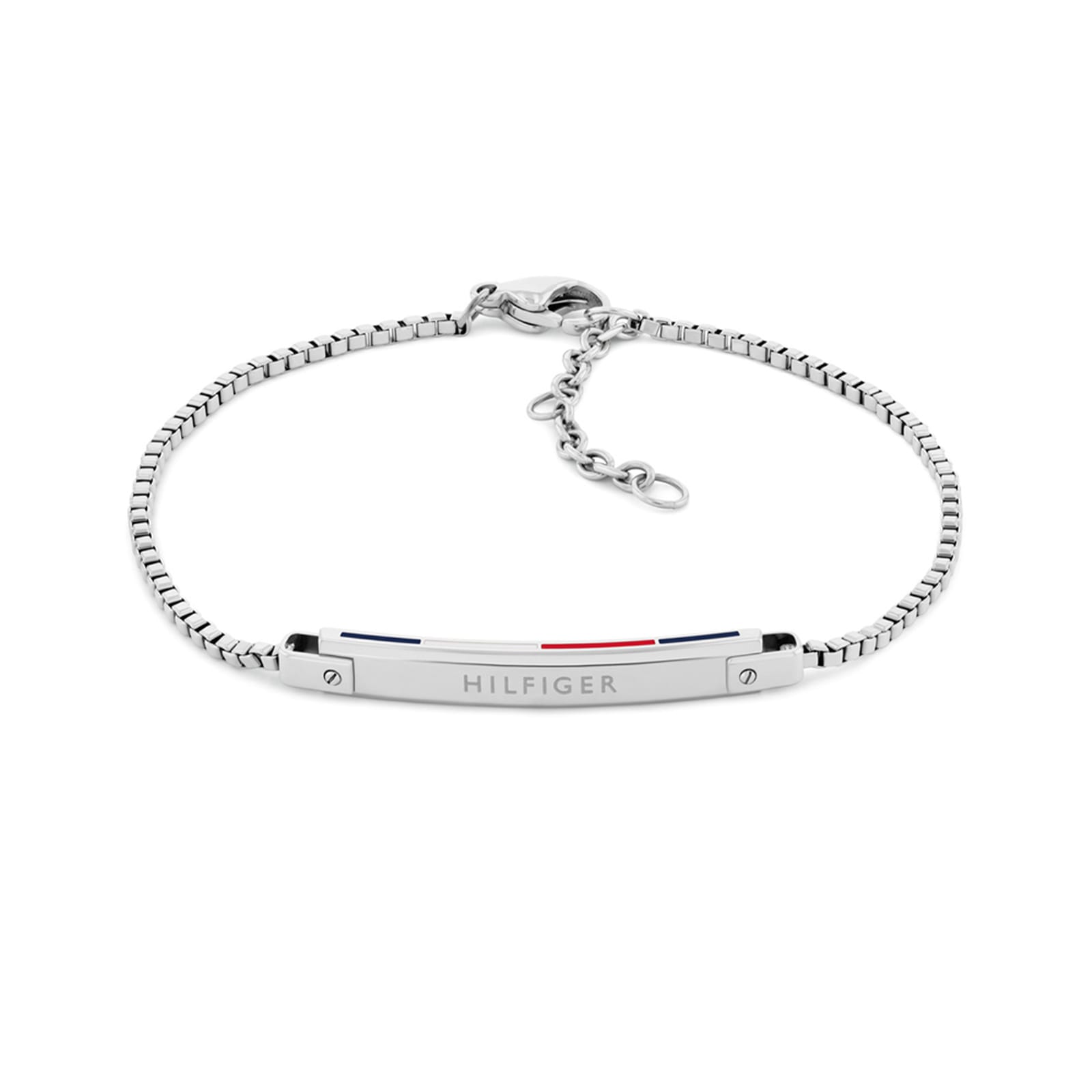 Γυναικείο βραχιόλι της Tommy Hilfiger από ανοξείδωτο ατσάλι σε ασημί χρώμα. Το κούμπωμα του βραχιολιού είναι από ανοξείδωτο ατσάλι και είναι ασφαλείας. Το βραχιόλι μπορεί να κουμπώσει στους 17, 18 και 19,5 πόντους.
