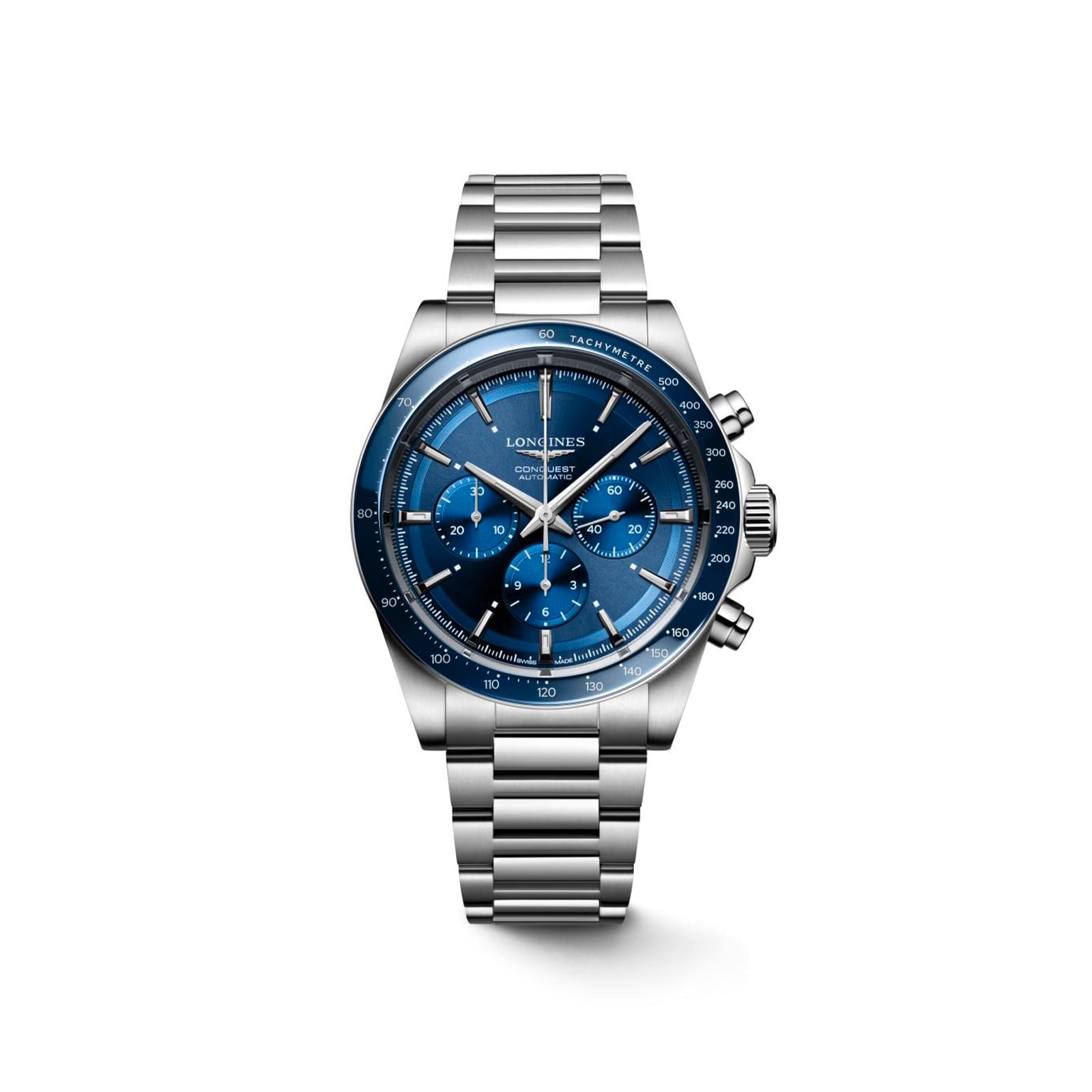 Ανδρικό ρολόι Longines της σειράς Conquest με μπρασελέ από ανοξείδωτο ατσάλι, με sunray μπλε καντράν με χρονογράφους και ένδειξη της ημερομηνίας, αυτόματο μηχανισμό κουρδίσματος που εκτελεί 25’200 ταλαντώσεις ανά ώρα, με απόθεμα ισχύος περίπου 72 ώρες και αχάρακτο κρύσταλλο ζαφειρίου και βιδωτή κορώνα. Η συλλογή Conquest έχει εξελιχθεί μέσω σχεδιασμού και τεχνολογίας, αλλά έχει παραμείνει πιστή στην αρχική της ταυτότητα, αποπνέοντας ένα αρμονικό μείγμα σύγχρονου σχεδιασμού και αθλητικής κομψότητας. Κάθε ρολόι Conquest αναδεικνύει την ακλόνητη δέσμευση της Longines στην απόδοση και την τελειότητα στην ωρολογοποιία. Με τα ευέλικτα μοντέλα του, το Conquest αποτελεί απόδειξη της αφοσίωσης της Longines στη δημιουργία ρολογιών για κάθε πτυχή της ζωής.